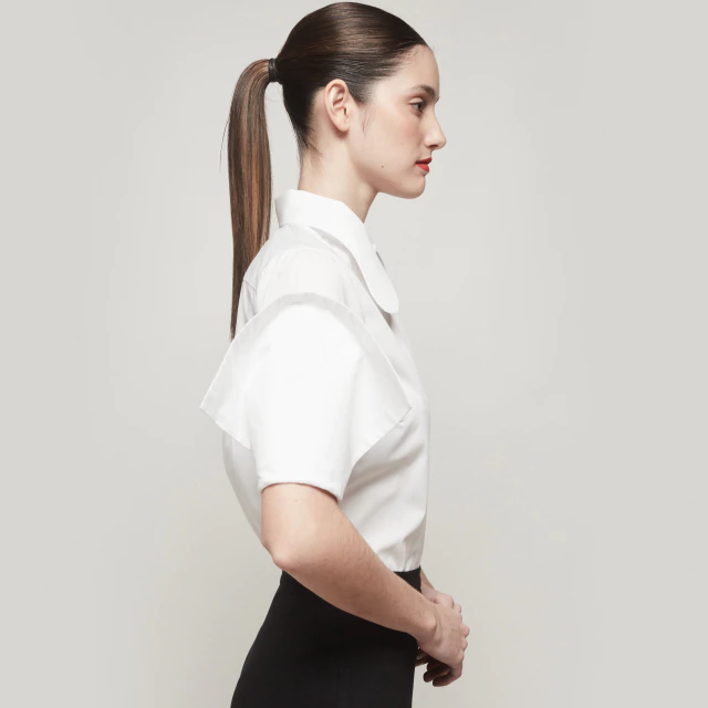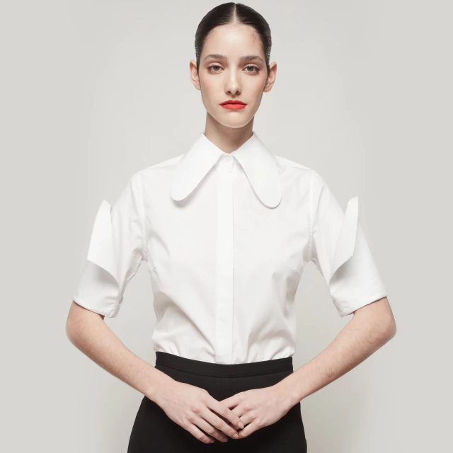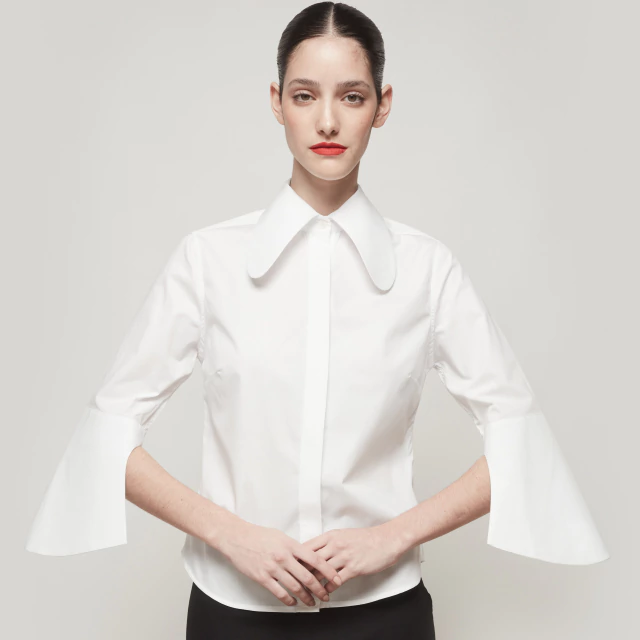 CAMISA EN POPLIN DE ALGODÓN BLANCO CON MAXI CUELLO Y PUÑOS XL, MANGAS 3/4.