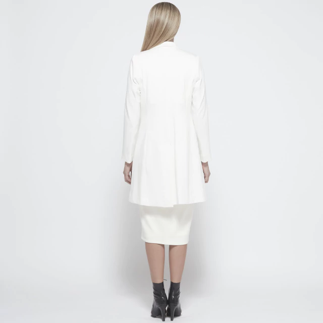 Abrigo en tejido tramado natural, entallado en la cintura.